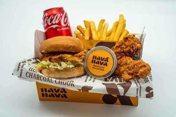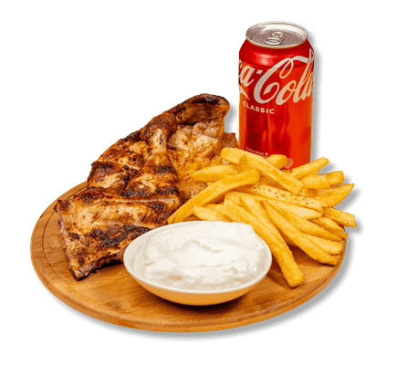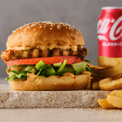 It comes with Grill burger (spicy or regular) Quarter chicken (breast or leg) Small Garlic Small chips Can drink